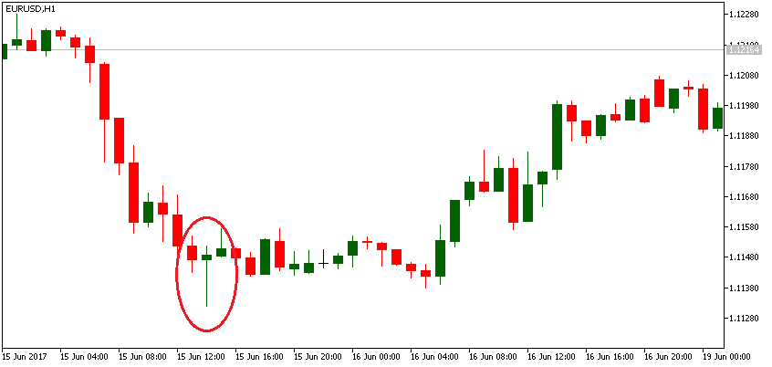 Тази свещ показва, че първоначално продавачите са контролирали нещата, но купувачите са успели да повишат цената и да затворят търговията близо до цената на отваряне. Подобно на предишния тип, това също е сигнал за обръщане на текущия тренд.