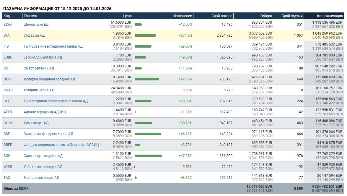 Особено силен импулс пазарът получи след присъединяването на България към еврозоната. Само в първите 7 работни дни след това индексът се повиши с над 15% – движение, което ясно показва колко оптимистично капиталовият пазар възприема тази стъпка за страната ни.