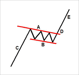 Breakout point (D) – the point at which the currency pair breaks up above the down-trending level of resistance (bullish wedge), or the point at which the currency pair breaks down below the up-trending level of support (bearish wedge).