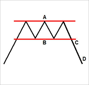 Breakout point (C) - the point at which the currency pair breaks up above the horizontal level of resistance (triple bottom), or the point at which the currency pair breaks down below the horizontal level of support (triple top).